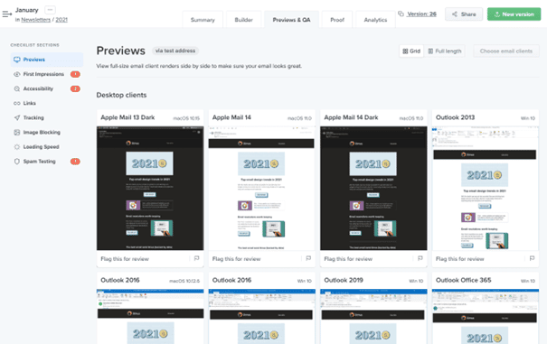 Das Testen deiner Mail für die verschiedenen E-Mail Clients als auch für die Geräte (Desktop, Tablet, Mobile) kannst du teilweise mit deinem E-Mail Tool testen. Diese nennt sich meist Inbox Preview oder Inbox Monitor. Ansonsten solltest du einmal die Lösungen der englischsprachigen Anbieter Litmus oder E-Mail on Acid testen. Hier gibt es jeweils eine kostenlose Testphase.